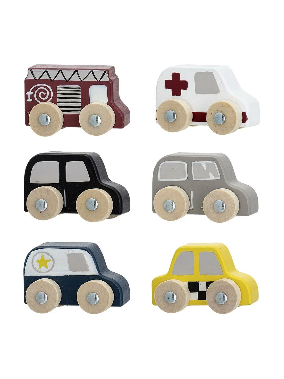 6 petites voitures de différentes couleurs et formes